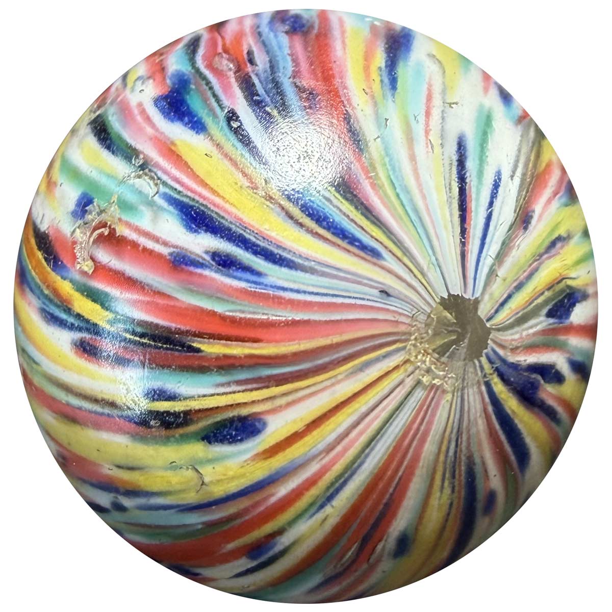 A marvel of Thuringian glassmaking, circa 1860–1920 Size 31/32″ Condition Near Mint(−) Origin Lauscha, Germany Circa 1850–1880 This is a Clown Onionskin, one of the most celebrated and immediately recognizable variants within the End of Day family. The designation comes from the color palette: bright, saturated spots of red, blue, green, and yellow applied over an opaque white base, then sealed under a clear outer casing. No two are alike. The [...]